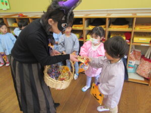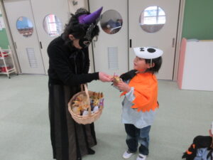 「トリックオアトリート!!」魔女さんから、お菓子をもらってとてもうれしそうでした!!