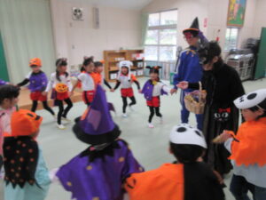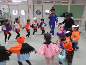 ♪ハッピー ハロウィン たのしいな~♪うたに合わせて、踊りながら
